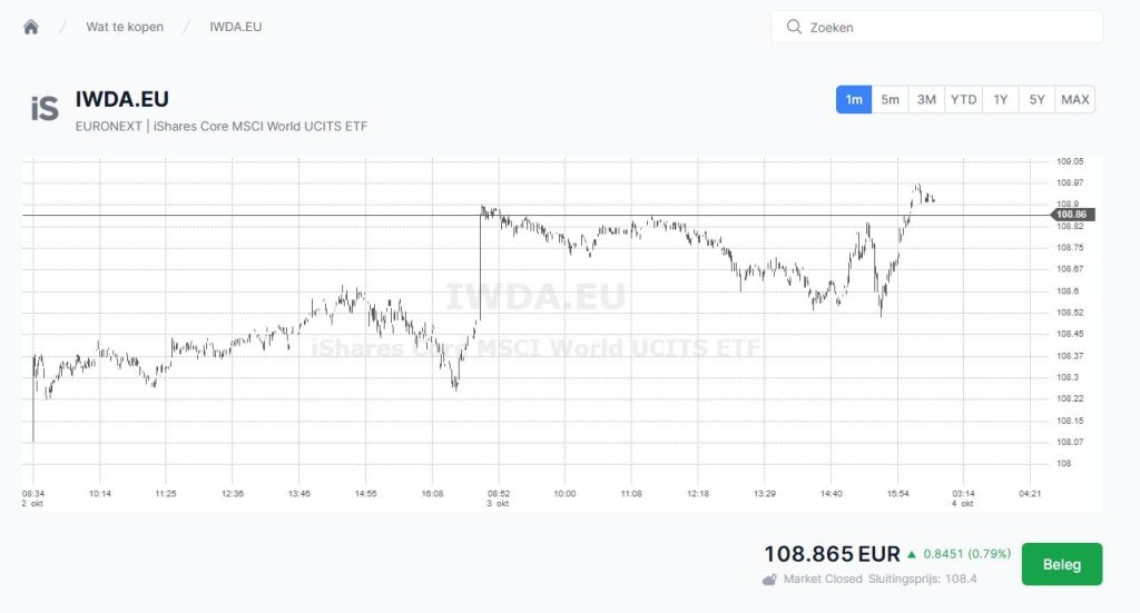 - Zoek op een aandeel via de zoekbalk (bijvoorbeeld Apple, Shell of MSCI World).