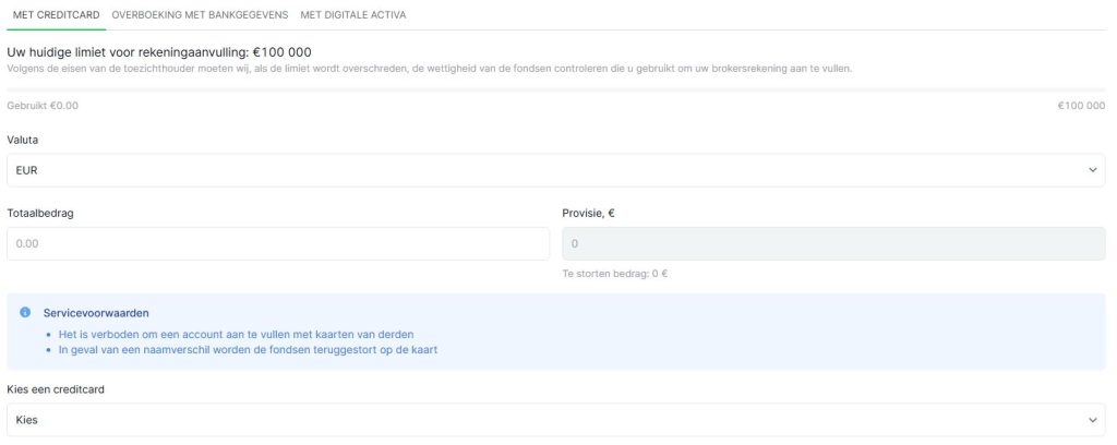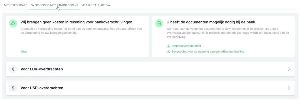 Wanneer je klaar bent met de verkenningsfase kun je aan de slag met het echte werk: geld storten op je beleggingsrekening. Dat kan eenvoudig via bankoverschrijving (SEPA), creditcard of debit-card of via Apple Pay of Google Pay (afhankelijk van het land en de bank). Het gestorte geld wordt toegevoegd aan je saldo en kun je (na toevoegen) direct gebruiken om te beleggen via Freedom24. Je kunt er aandelen, ETF’s of andere financiële producten van kopen.